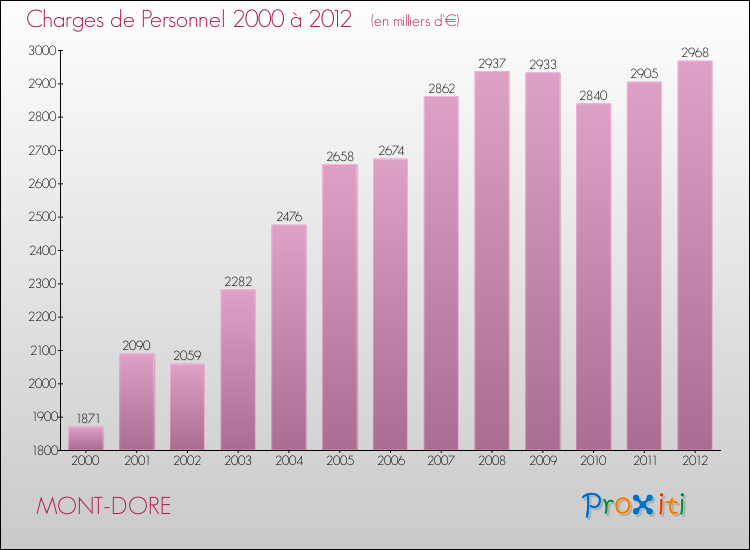 En 2012, le budget de fonctionnement de la commune de Mont-Dore se montait à : 6 671 000 € décomposé comme suit :