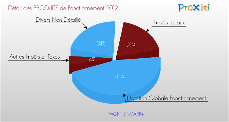 En 2012, le budget de fonctionnement de la commune de Mont-et-Marré se montait à : 92 000 € décomposé comme suit :