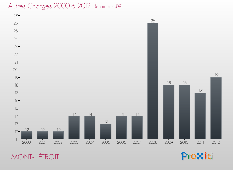 En 2012, les charges de fonctionnement de la commune de Mont-l'Étroit étaient de : 83 000 € décomposées comme suit :
