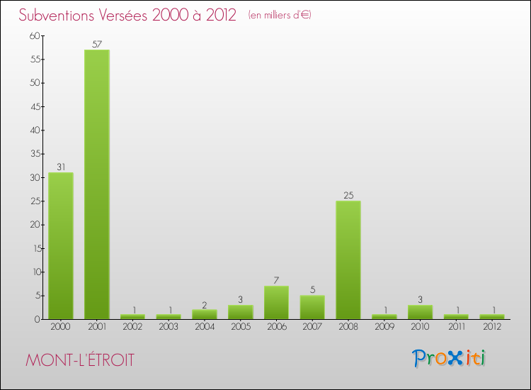 Le résultat comptable de la commune de Mont-l'Étroit s'établissait ainsi à : + 12 000 € fin 2012.