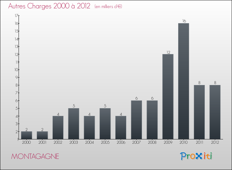 En 2012, les charges de fonctionnement de la commune de Montagagne étaient de : 54 000 € décomposées comme suit :