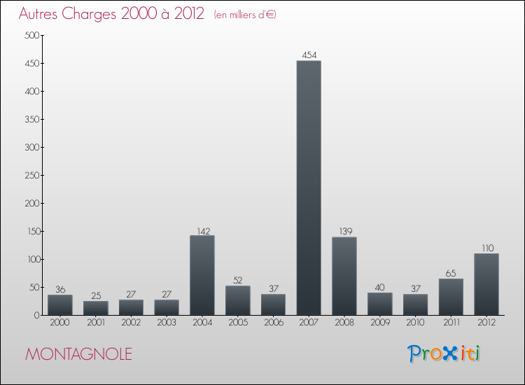 En 2012, les charges de fonctionnement de la commune de Montagnole étaient de : 538 000 € décomposées comme suit :