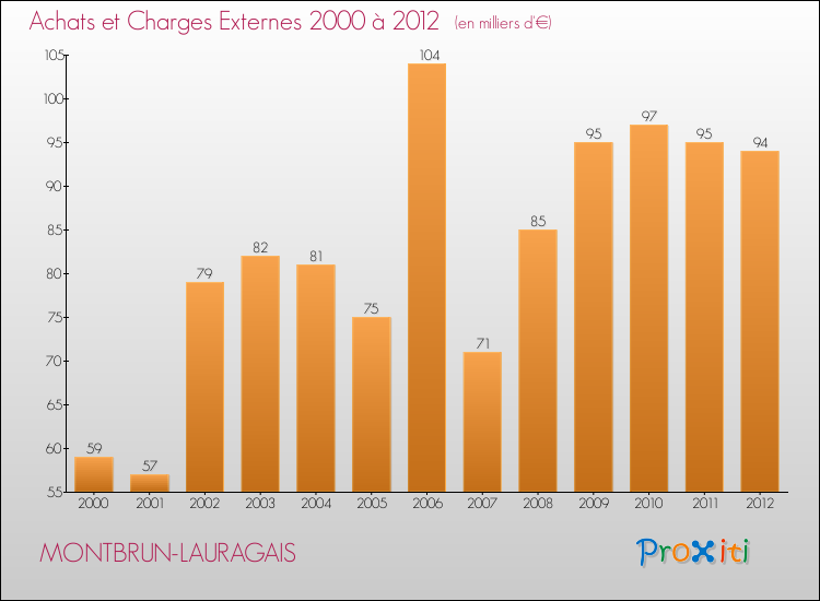 En 2012, les charges de fonctionnement de la commune de Montbrun-Lauragais étaient de : 374 000 € décomposées comme suit :