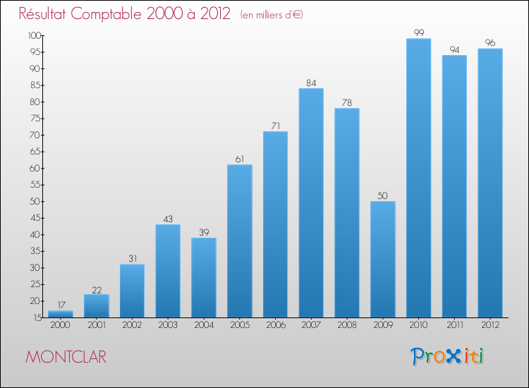 Le résultat comptable de la commune de Montclar s'établissait ainsi à : + 96 000 € fin 2012.