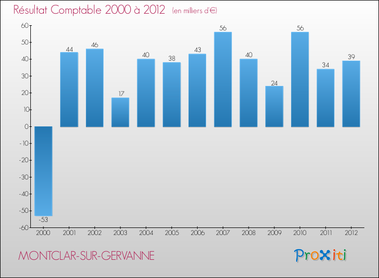 Le résultat comptable de la commune de Montclar-sur-Gervanne s'établissait ainsi à : + 39 000 € fin 2012.