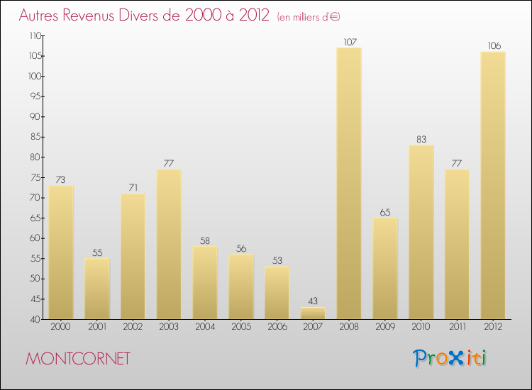 Evolution du résultat comptable pour MONTCORNET de 2000 à 2012