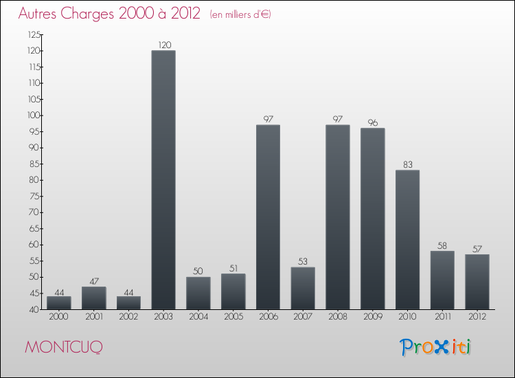 En 2012, les charges de fonctionnement de la commune de Montcuq étaient de : 736 000 € décomposées comme suit :