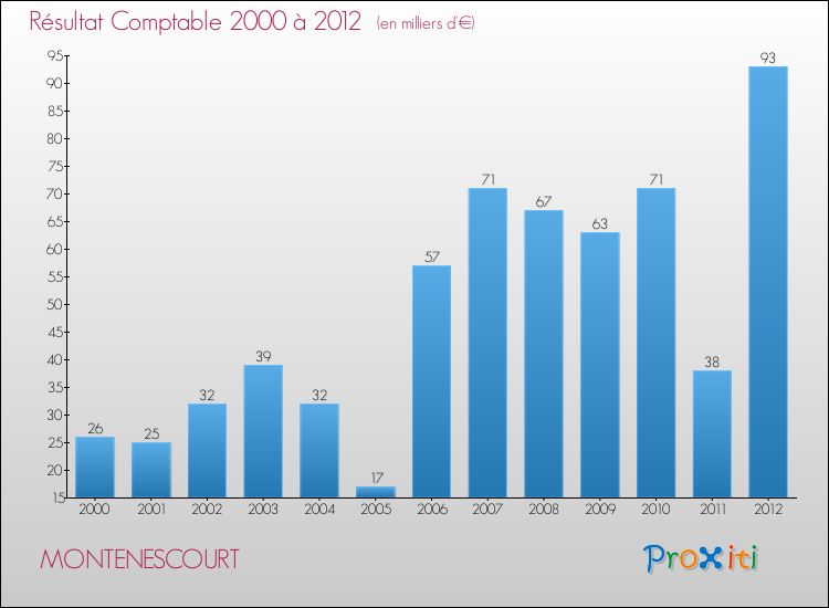 Le résultat comptable de la commune de Montenescourt s'établissait ainsi à : + 93 000 € fin 2012.