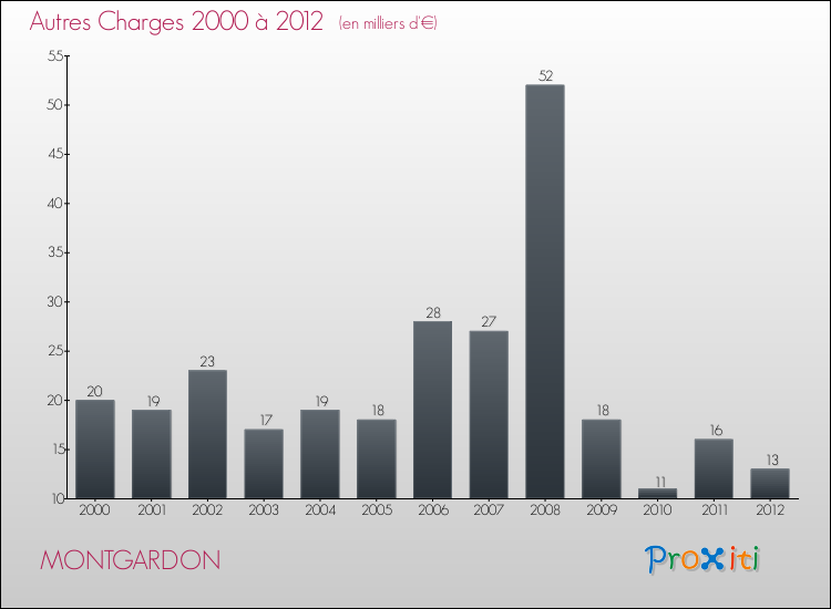 En 2012, les charges de fonctionnement de la commune de Montgardon étaient de : 121 000 € décomposées comme suit :