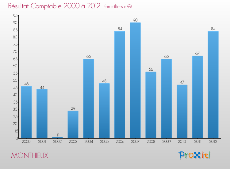 Le résultat comptable de la commune de Monthieux s'établissait ainsi à : + 84 000 € fin 2012.