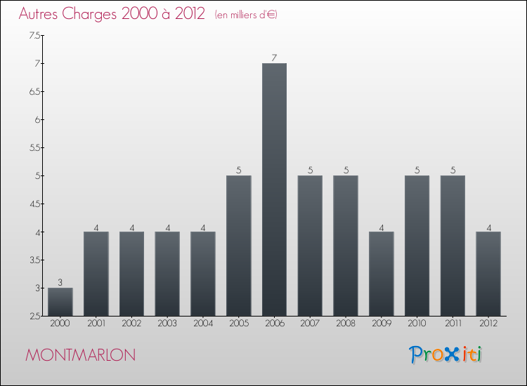 En 2012, les charges de fonctionnement de la commune de Montmarlon étaient de : 43 000 € décomposées comme suit :