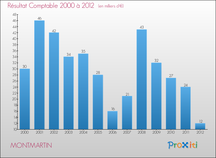 Le résultat comptable de la commune de Montmartin s'établissait ainsi à : + 12 000 € fin 2012.