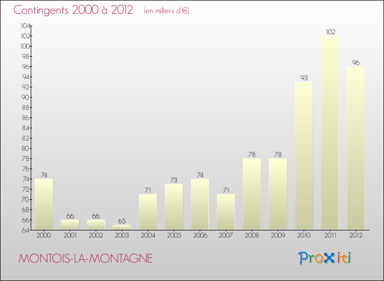 Le résultat comptable de la commune de Montois-la-Montagne s'établissait ainsi à : + 94 000 € fin 2012.