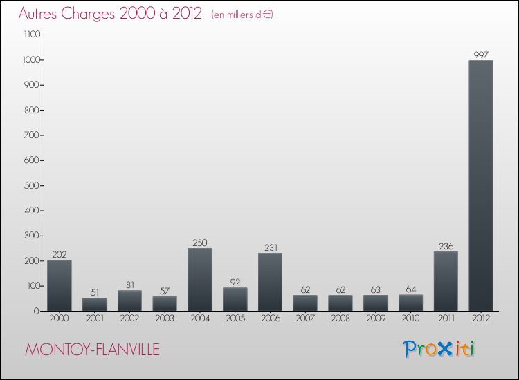 En 2012, les charges de fonctionnement de la commune de Montoy-Flanville étaient de : 1 875 000 € décomposées comme suit :