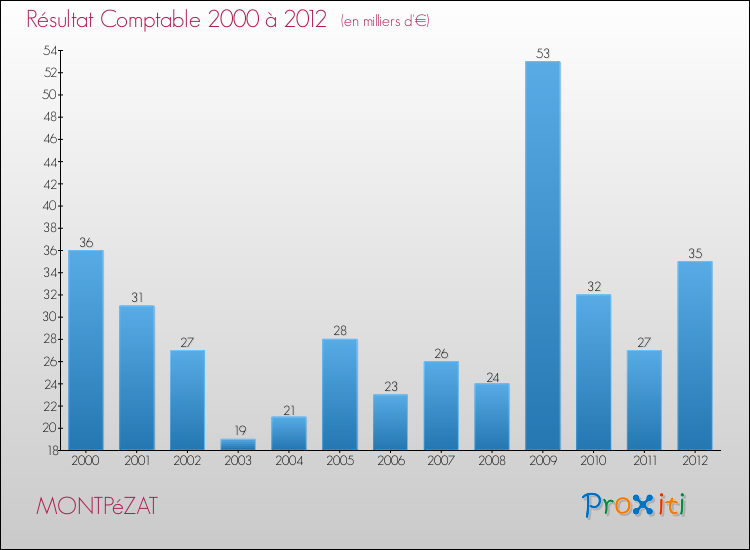 Le résultat comptable de la commune de Montpézat s'établissait ainsi à : + 35 000 € fin 2012.