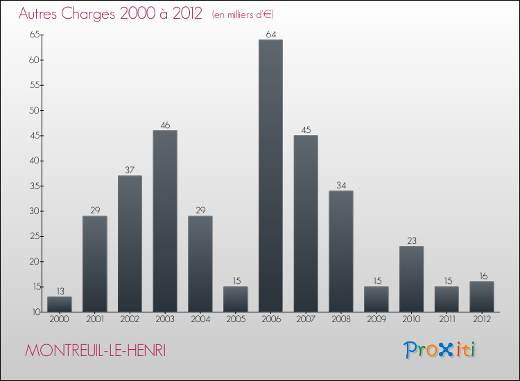 En 2012, les charges de fonctionnement de la commune de Montreuil-le-Henri étaient de : 176 000 € décomposées comme suit :