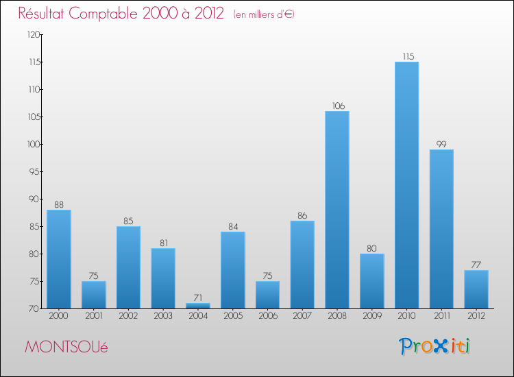 Le résultat comptable de la commune de Montsoué s'établissait ainsi à : + 77 000 € fin 2012.