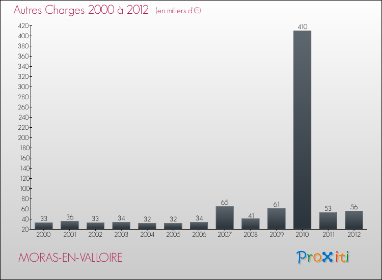 En 2012, les charges de fonctionnement de la commune de Moras-en-Valloire étaient de : 423 000 € décomposées comme suit :