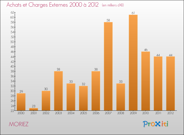 En 2012, les charges de fonctionnement de la commune de Moriez étaient de : 151 000 € décomposées comme suit :
