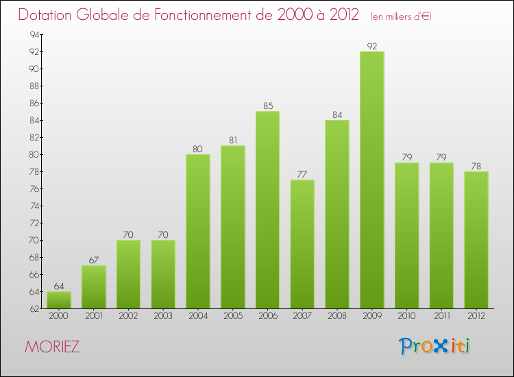 Le résultat comptable de la commune de Moriez s'établissait ainsi à : + 82 000 € fin 2012.