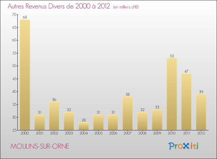 En 2012, le budget de fonctionnement de la commune de Moulins-sur-Orne se montait à : 120 000 € décomposé comme suit :