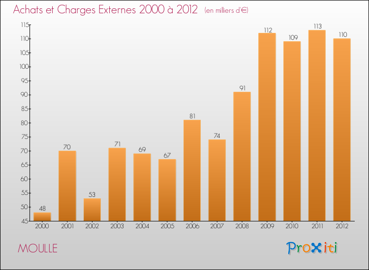 En 2012, les charges de fonctionnement de la commune de Moulle étaient de : 337 000 € décomposées comme suit :