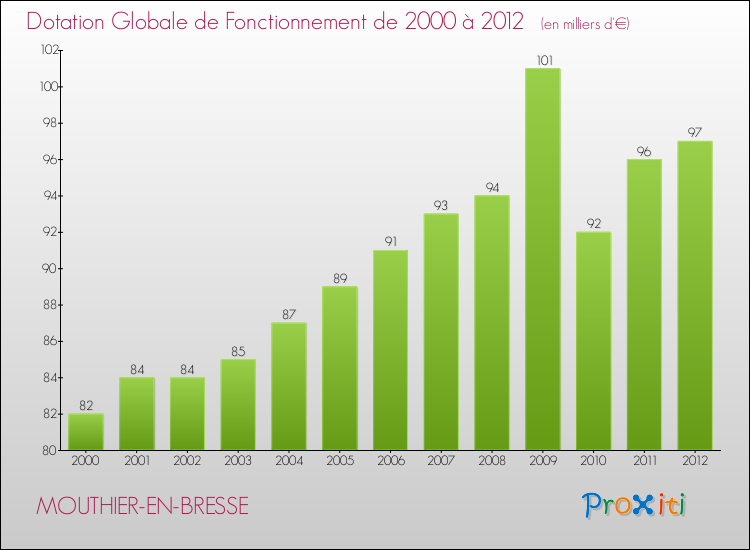 En 2012, le budget de fonctionnement de la commune de Mouthier-en-Bresse se montait à : 198 000 € décomposé comme suit :