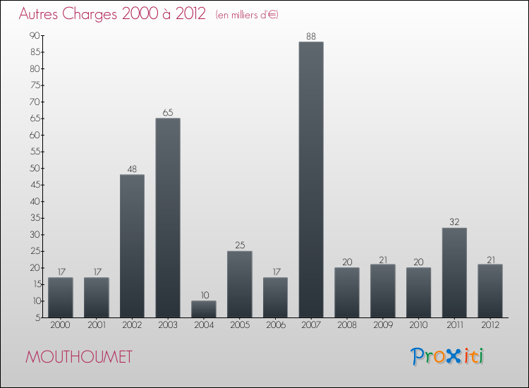 En 2012, les charges de fonctionnement de la commune de Mouthoumet étaient de : 146 000 € décomposées comme suit :
