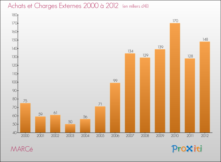 En 2012, les charges de fonctionnement de la commune de Marcé étaient de : 435 000 € décomposées comme suit :