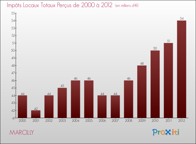 Evolution du résultat comptable pour MARCILLY de 2000 à 2012