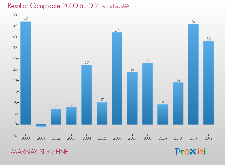 Le résultat comptable de la commune de Marnay-sur-Seine s'établissait ainsi à : + 38 000 € fin 2012.