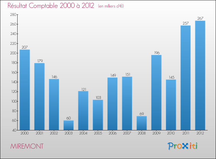 Le résultat comptable de la commune de Miremont s'établissait ainsi à : + 267 000 € fin 2012.