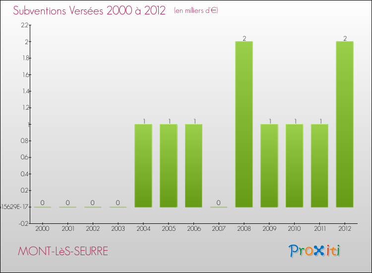 Evolution du résultat comptable pour MONT-LèS-SEURRE de 2000 à 2012