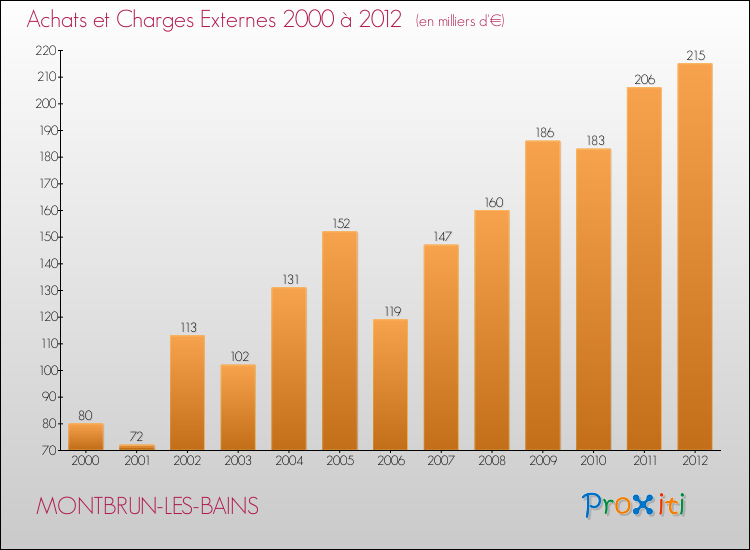 En 2012, le budget de fonctionnement de la commune de Montbrun-les-Bains se montait à : 853 000 € décomposé comme suit :