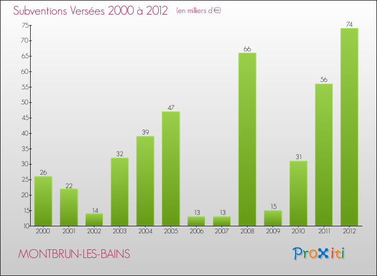 - Subventions Versées (aux associations et établissements publics) : 74 000 €