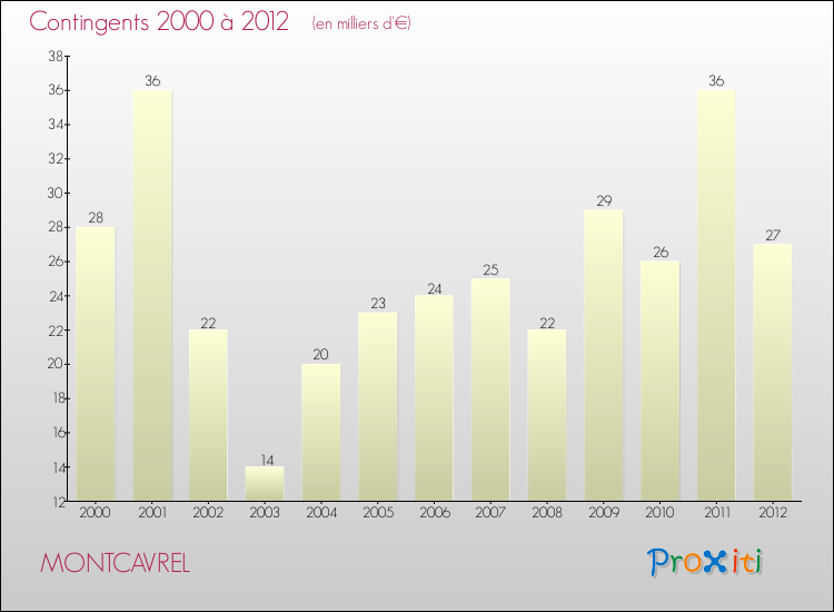 Evolution du résultat comptable pour MONTCAVREL de 2000 à 2012