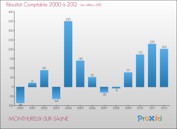 Le résultat comptable de la commune de Monthureux-sur-Saône s'établissait ainsi à : + 202 000 € fin 2012.