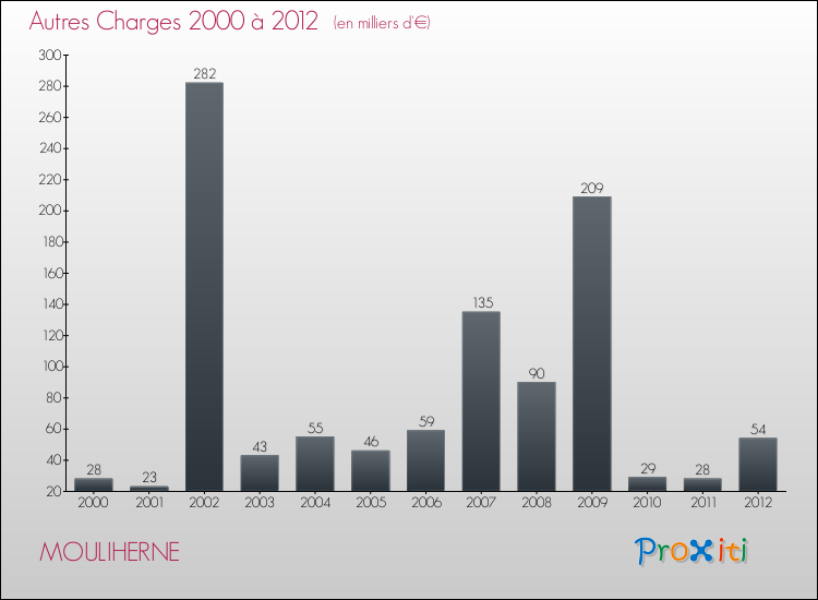 En 2012, les charges de fonctionnement de la commune de Mouliherne étaient de : 471 000 € décomposées comme suit :