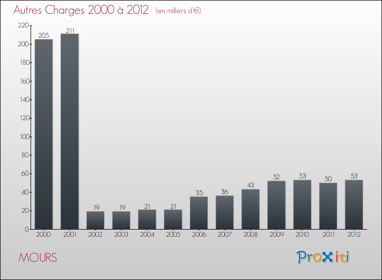 En 2012, les charges de fonctionnement de la commune de Mours étaient de : 859 000 € décomposées comme suit :