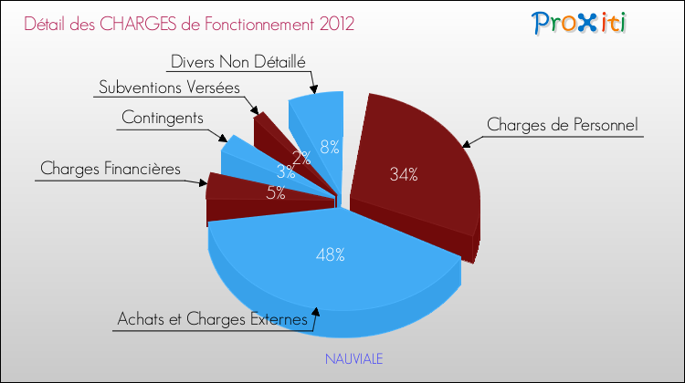 En 2012, les charges de fonctionnement de la commune de Nauviale étaient de : 271 000 € décomposées comme suit :