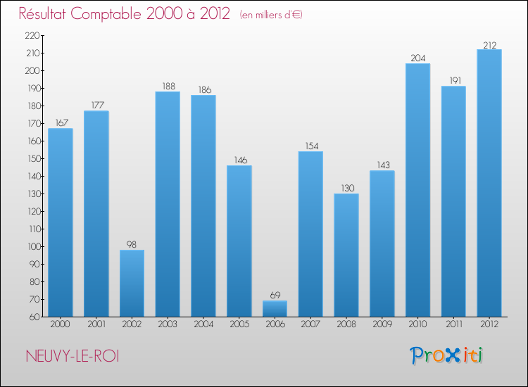 Le résultat comptable de la commune de Neuvy-le-Roi s'établissait ainsi à : + 212 000 € fin 2012.