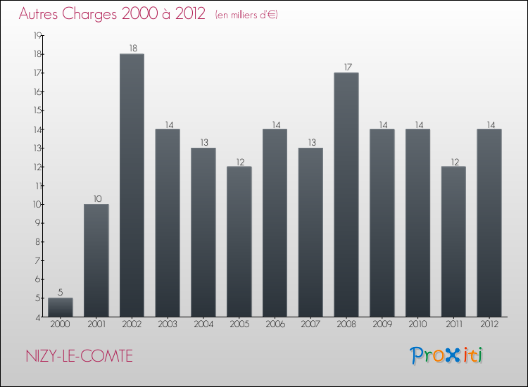 En 2012, les charges de fonctionnement de la commune de Nizy-le-Comte étaient de : 148 000 € décomposées comme suit :