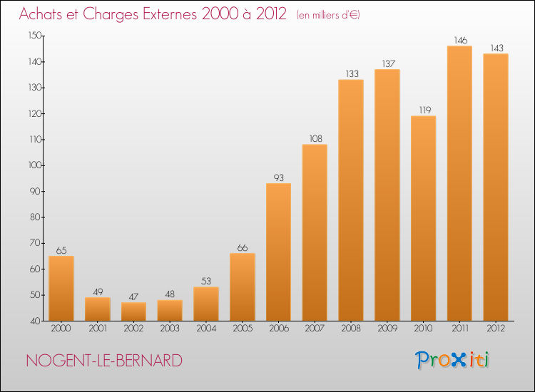 En 2012, les charges de fonctionnement de la commune de Nogent-le-Bernard étaient de : 546 000 € décomposées comme suit :