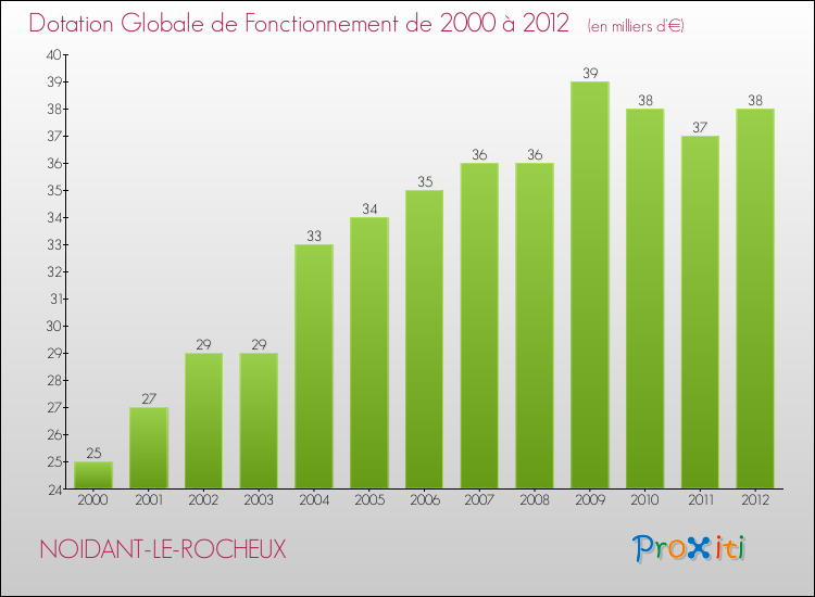 Le résultat comptable de la commune de Noidant-le-Rocheux s'établissait ainsi à : -4 000 € fin 2012 (recettes-dépenses).