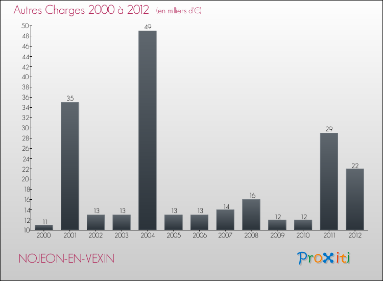 En 2012, les charges de fonctionnement de la commune de Nojeon-en-Vexin étaient de : 133 000 € décomposées comme suit :
