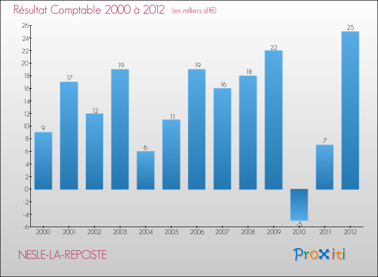 Le résultat comptable de la commune de Nesle-la-Reposte s'établissait ainsi à : + 25 000 € fin 2012.