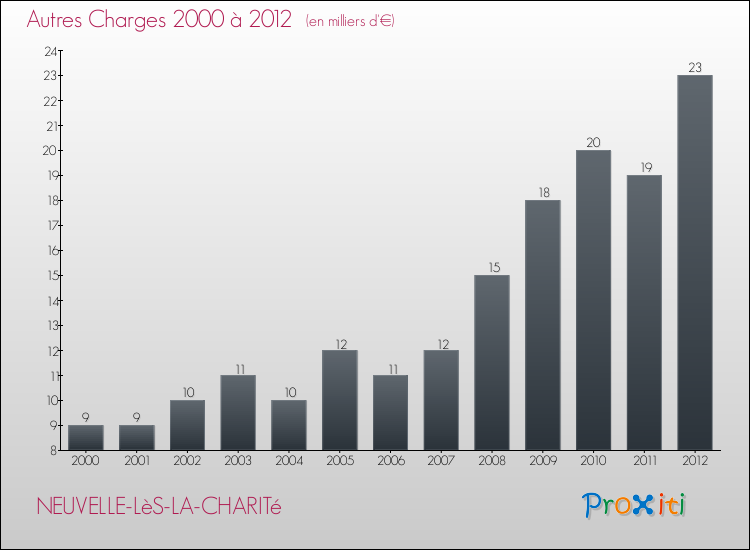 En 2012, les charges de fonctionnement de la commune de Neuvelle-lès-la-Charité étaient de : 118 000 € décomposées comme suit :