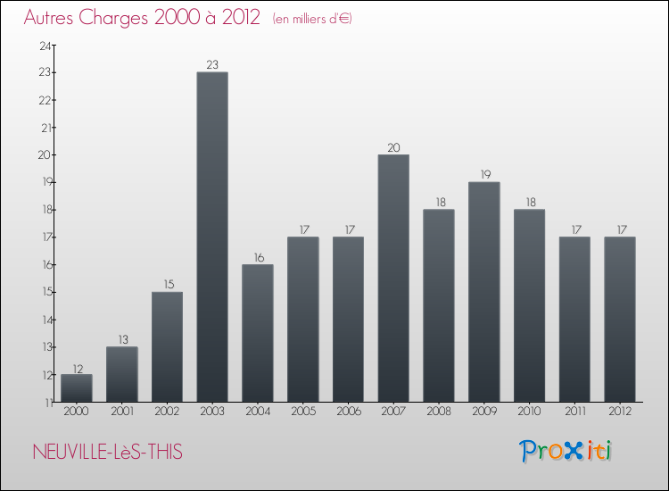 En 2012, les charges de fonctionnement de la commune de Neuville-lès-This étaient de : 245 000 € décomposées comme suit :