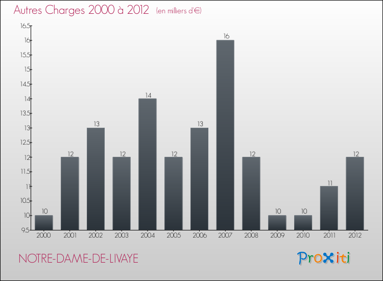 En 2012, les charges de fonctionnement de la commune de Notre-Dame-de-Livaye étaient de : 30 000 € décomposées comme suit :
