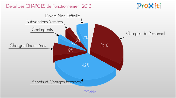 En 2012, les charges de fonctionnement de la commune de Ocana étaient de : 636 000 € décomposées comme suit :